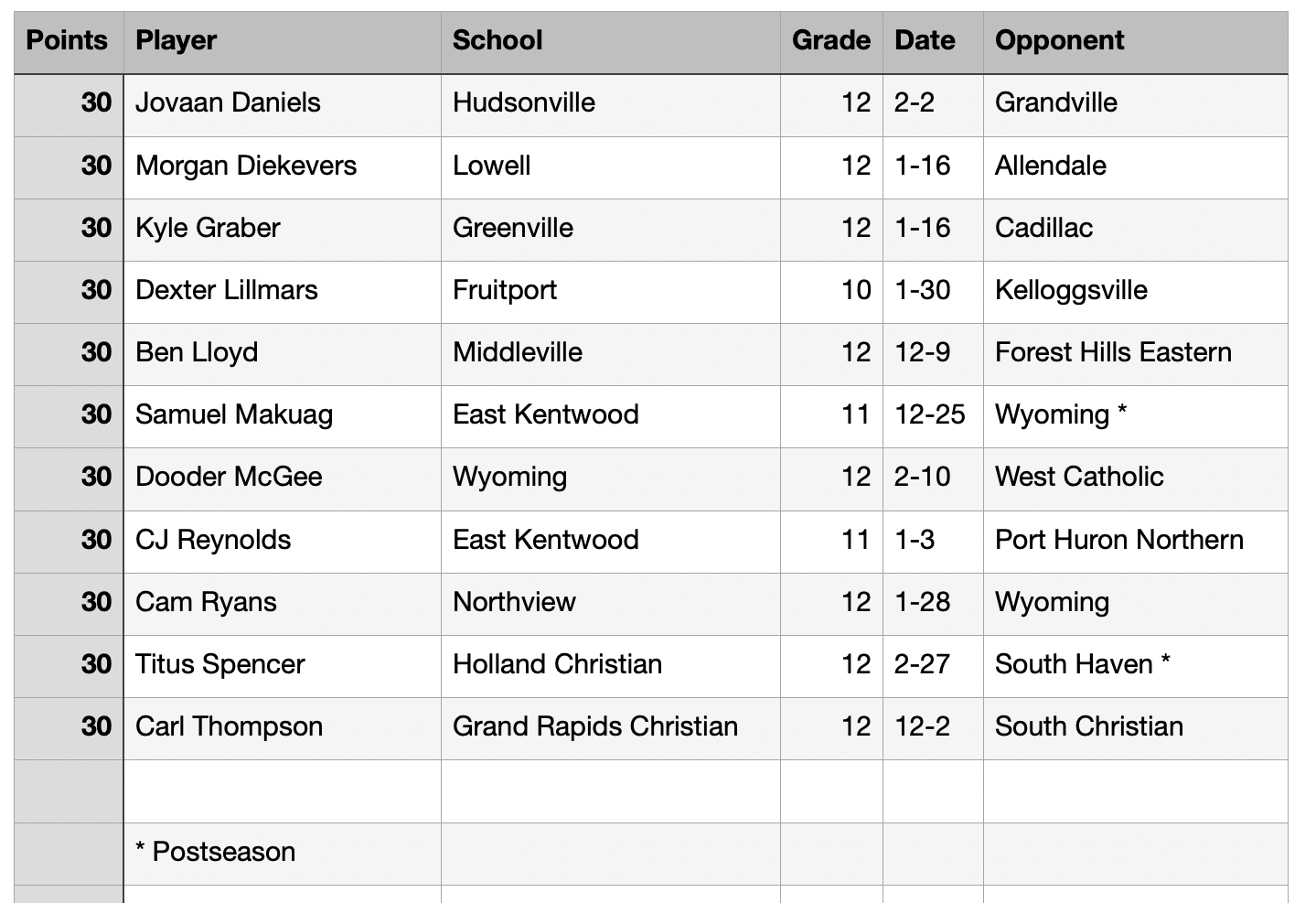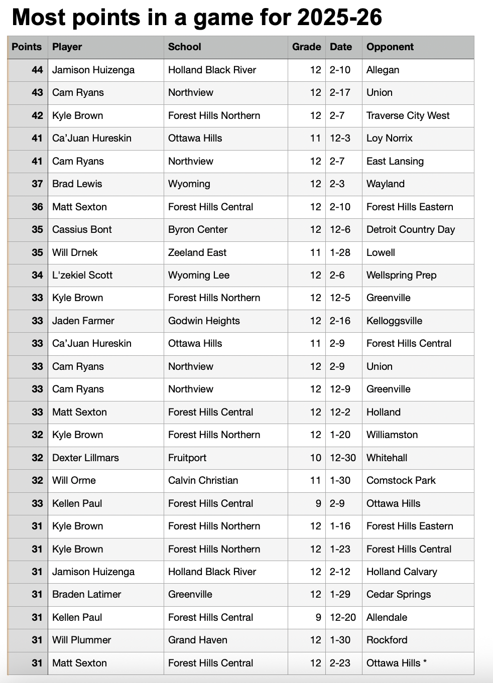 30-plus Point Games for Grand Rapids area players