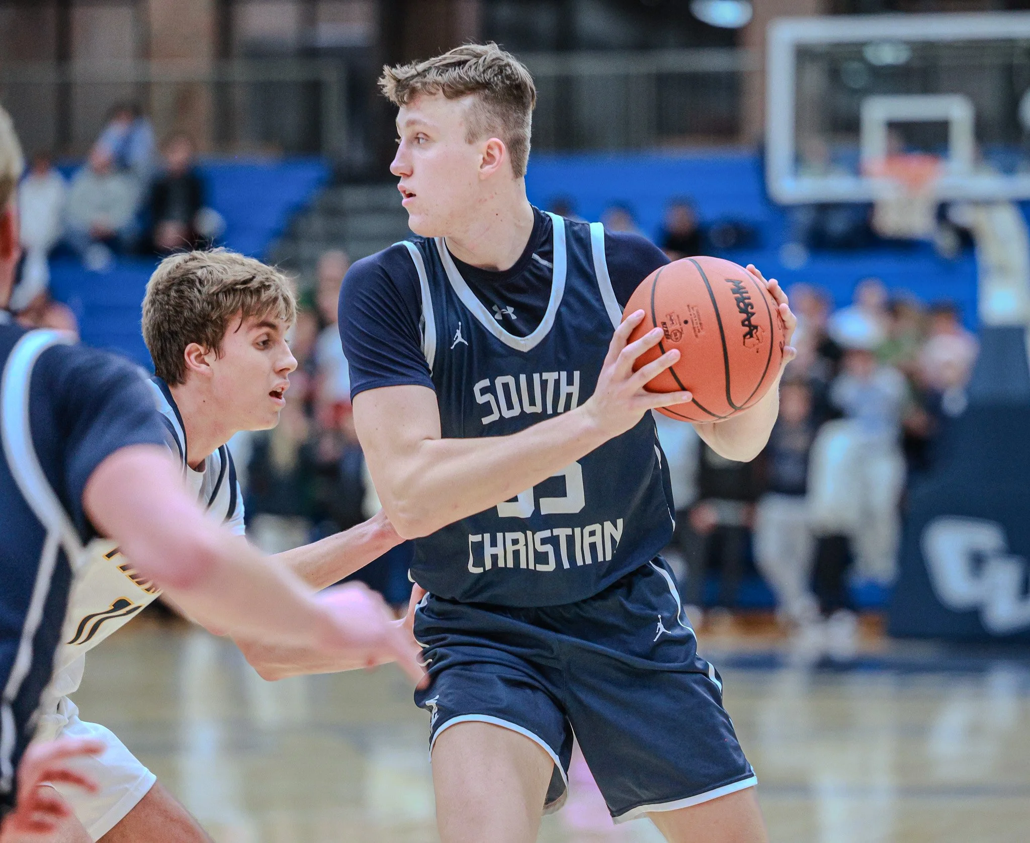 Davis Kemper plays with South Christian at the Cornerstone Holiday Tournament on Dec. 27, 2024. He signed to play at Division I Saint Joseph University. (Photo | Lenny Padilla).